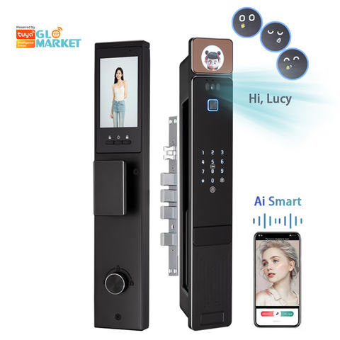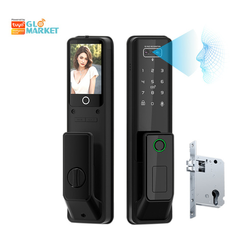 Glomarket 3D Face Recognition Aluminum Alloy Smart Lock Fingerprint Tuya App Control Active Video Intercom Emergency Backup