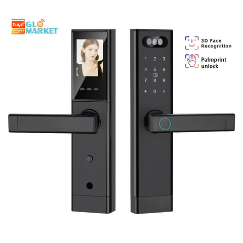Glomarket 3D Face Recognition Smart Door Lock with Tuya Real-Time Video Intercom WiFi Palm Print Unlock for Wood Door