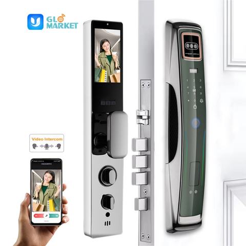 グロマーケット Tuya スマートリムロック 防水 屋外 生体認証 指紋 デジタルキーパッド 顔認証 ビデオインターホン ロック